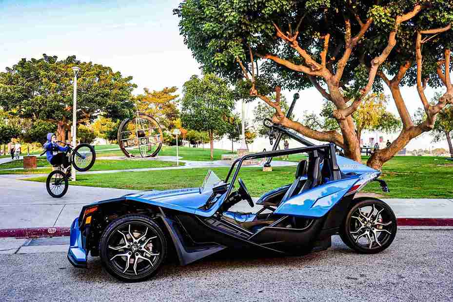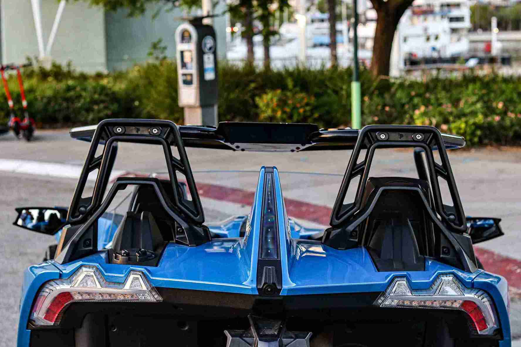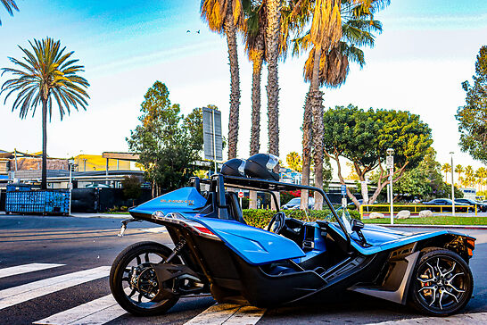 Enjoy the open-air cruising around Los Angeles with Trifecta Reservation in CODE BLUE, a 2020 Polaris Slingshot SL.